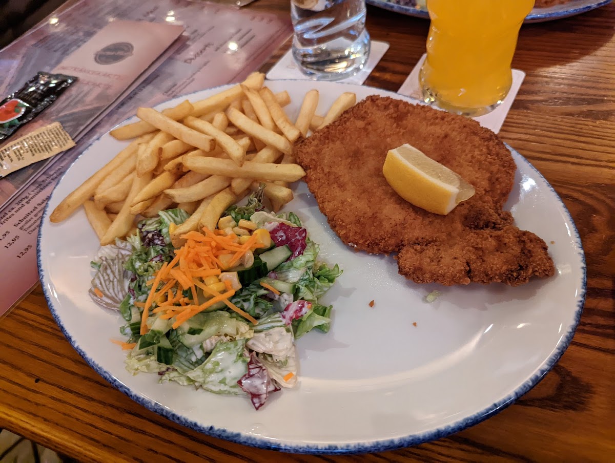We loved this place and tried the Schofferhoffer weizenbier, jagerschnitzel and the schnitzel Wiener art, both of which were delicious. We especially loved the champignon sauce. Staff is friendly, toilets are clean. Would fully recommend eating at this restaurant.